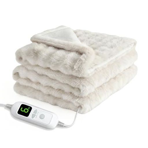 電気毛布膝掛け肩掛け【2025AI自動温度調整表面ラビットファー調+裏面フランネル】掛け敷き洗える1・・・