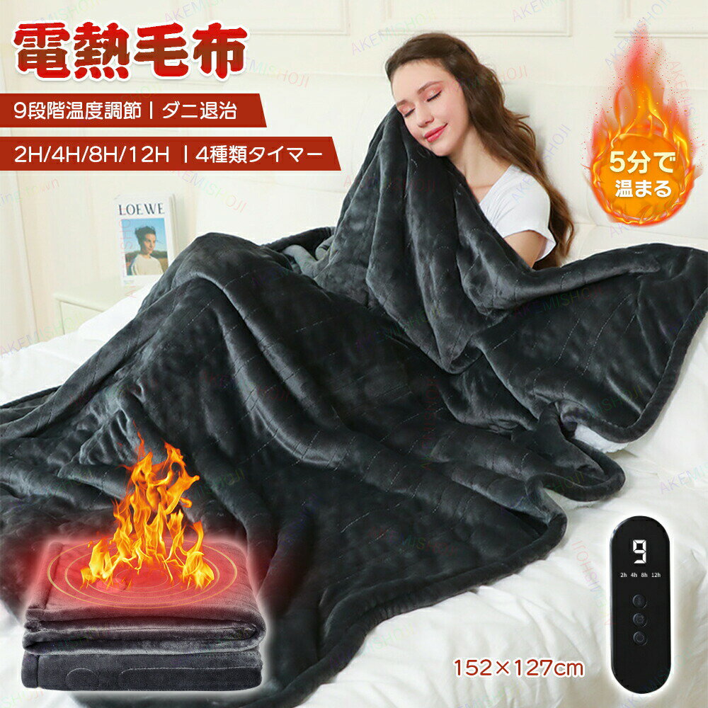 152×127cm 電気毛布 掛け敷き兼用 電気ブランケット 電気敷き毛布 9段階温度 2H/4H/8H/12H切りタイマー 厚手 フランネル 洗える ダニ退治 防寒対策 肩掛け 膝掛け クリスマス ギフト