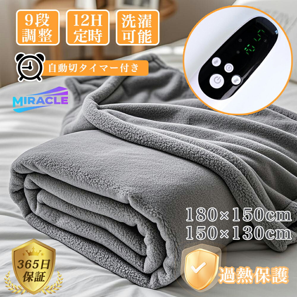 電気毛布 洗える 掛け敷き ふわふわ毛布 1-12時間 タイマー付き 9段階温度 130×150cm・・・