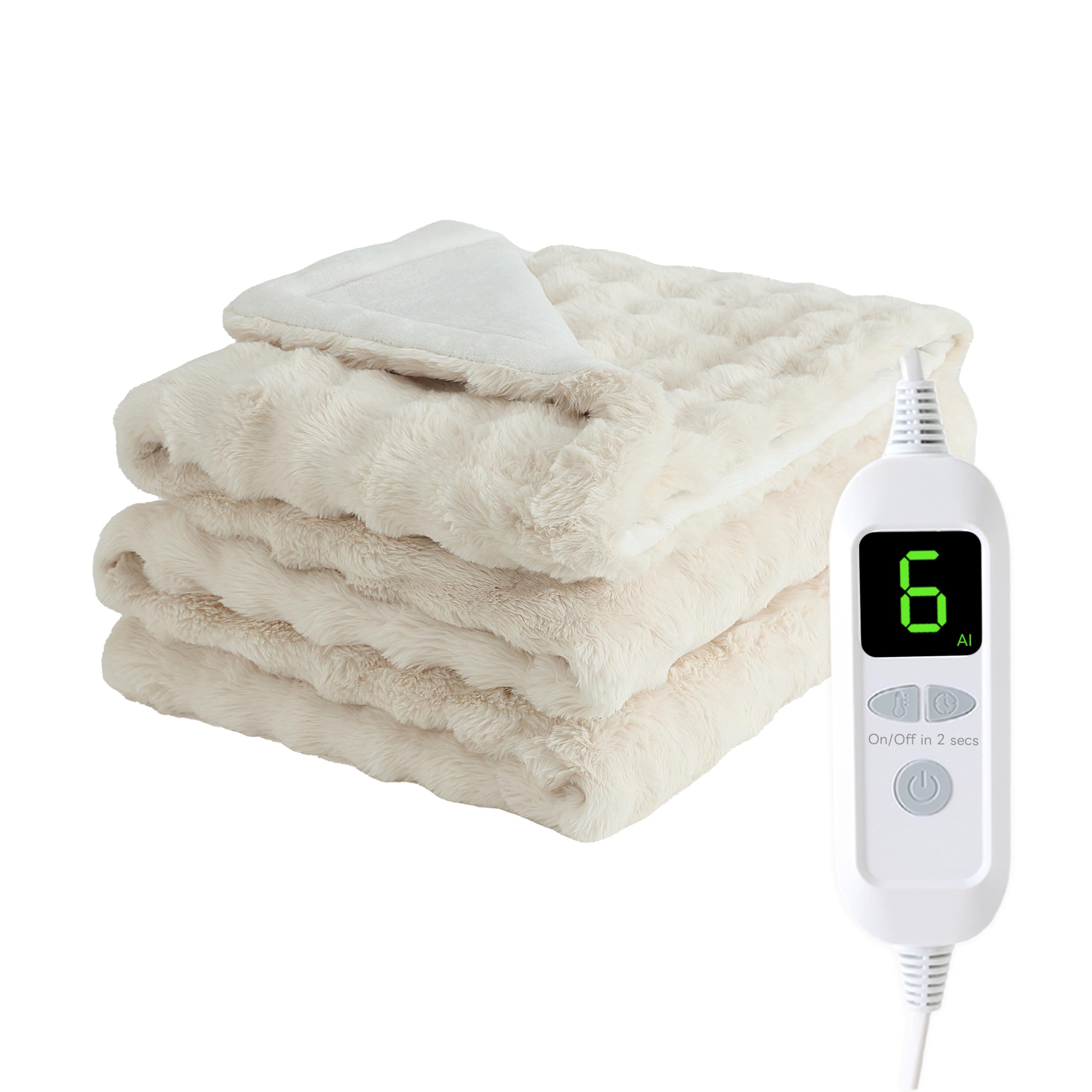 電気毛布 掛け 敷き 【2025 AI自動温度調整 表面ラビットファー調+裏面フランネル】 160×・・・