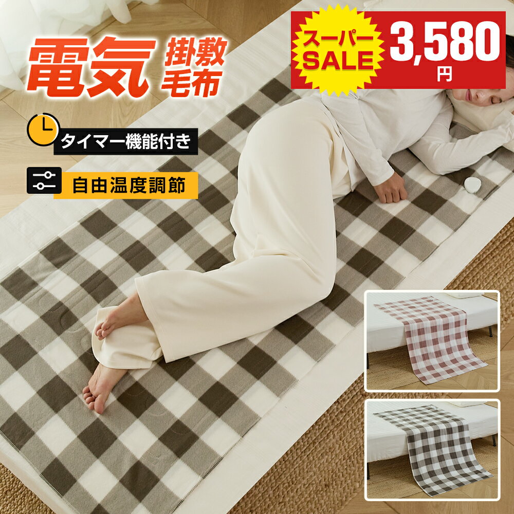 \SS限定クーポンで5,180円//電気毛布 掛け敷き 190x130cm フランネル タイマー付き・・・