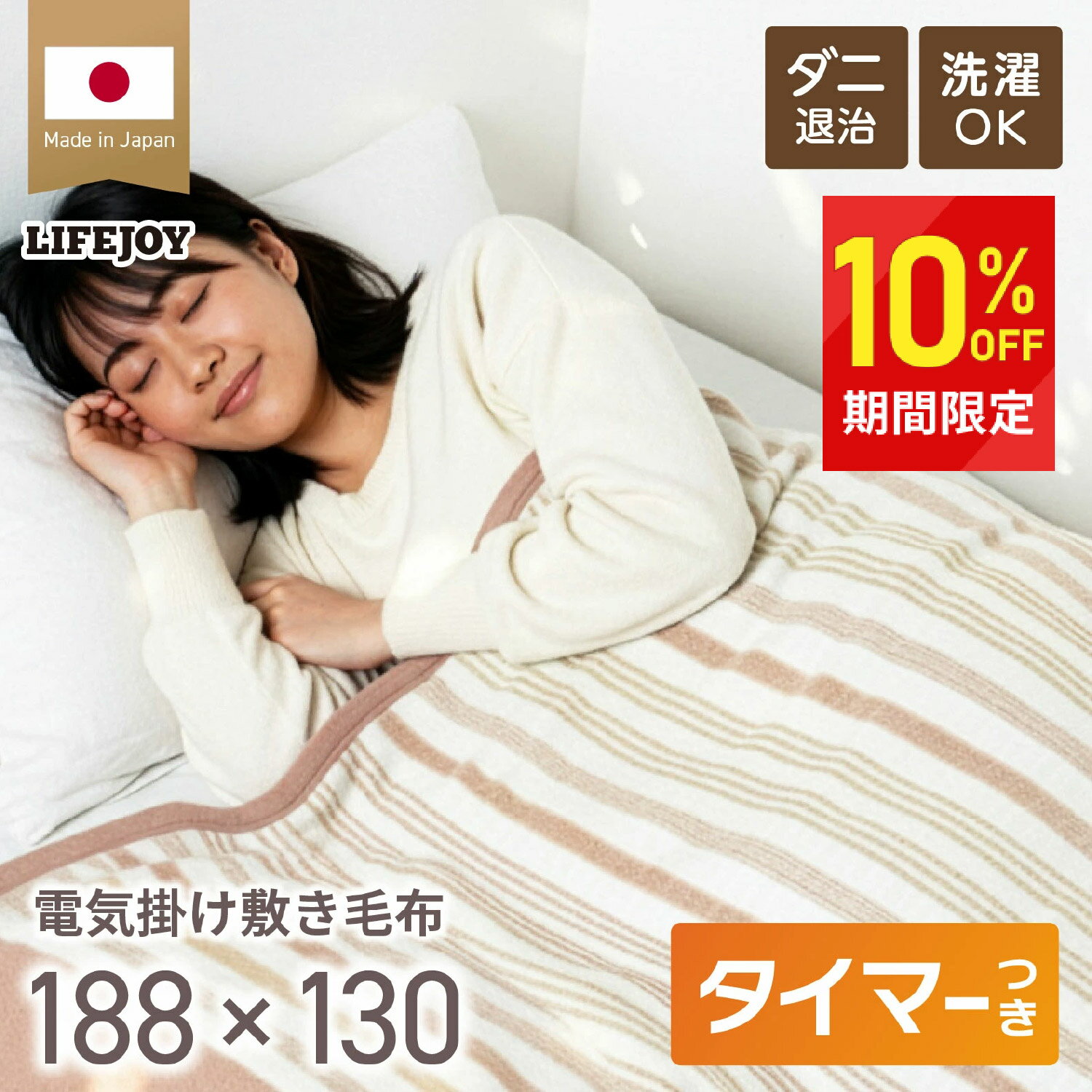 【日本製】電気毛布 掛け敷き 188cm×130cm 全2色 切り忘れ防止タイマー付 室温センサー ・・・