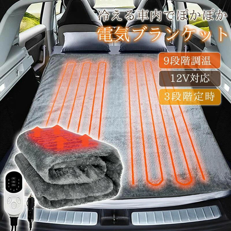 電気毛布 掛け敷き 車用 シガーライター 速暖 温度調節 タイマー付き 9段階調温 敷き電気毛布 洗・・・