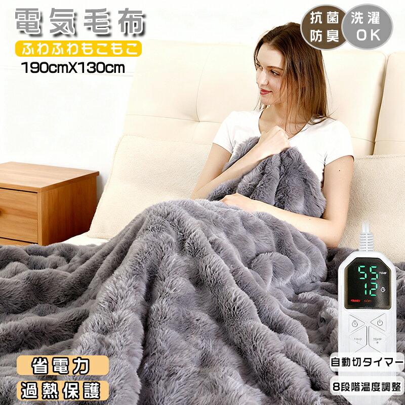 電気毛布 洗える 掛け敷き ふわふわ毛布 タイマー付き 抗菌防臭 ダニ退治 自動電源オフ 丸洗い 電気ひざ掛け 肩掛け 膝掛け 電気ブランケット もこもこ ふわもこ 防寒 省エネ