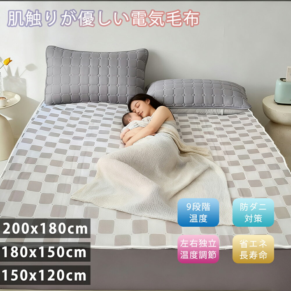 電気毛布 敷き 左右 別々 4サイズ 150*80cm 150*120cm 180*150cm 200*180cm 電気毛布 温度調節 節電 自動電源オフ 過熱保護 送料無料