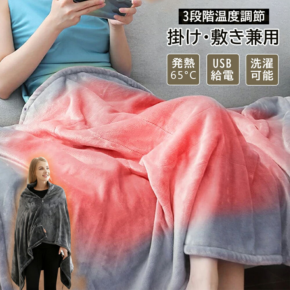 電気毛布 ひざ掛け 掛け敷き兼用 USBブランケット 電気ブランケット usb給電 大判 三段階温度・・・