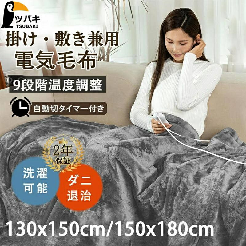 電気毛布 ふわふわ 敷き毛布 掛け毛布 フランネル ひざ掛け 150×130cm 150×180cm 洗える 電気ブランケット 9hタイマー付き ダニ退治 自動電源オフ 寒さ対策