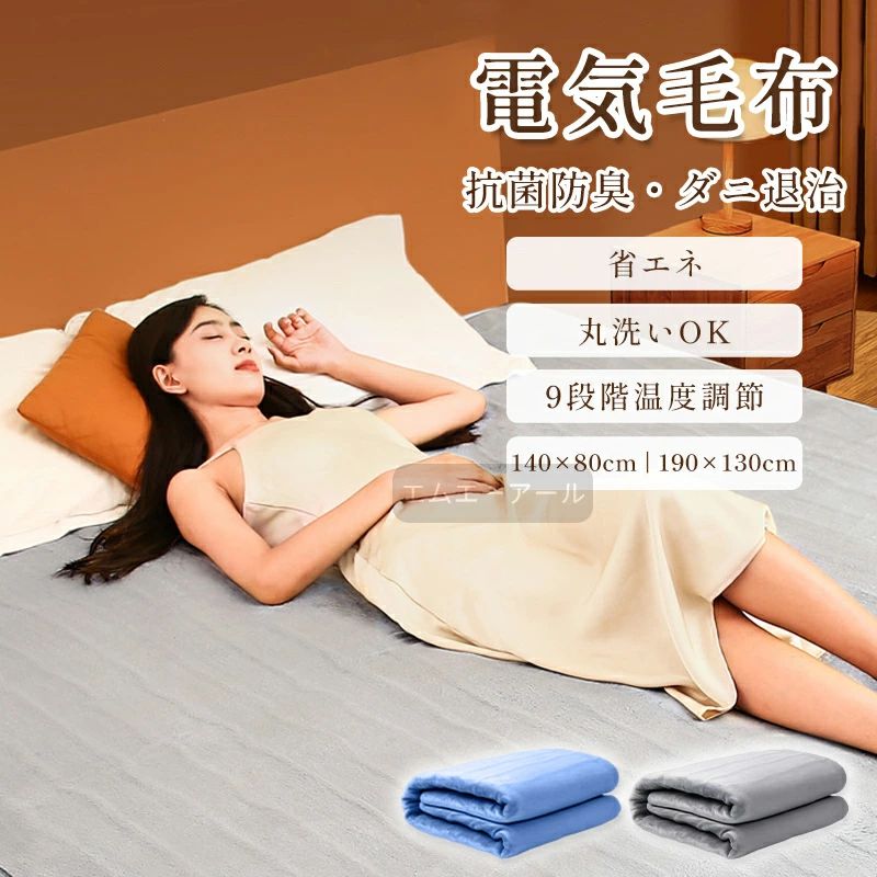 ふわふわ柔らかいフランネル素材が全身を包み込む。 9段階温度調節とタイマー機能で快適&安全に使える。 洗濯可能・省エネ設計の電気毛布で冬の寒さ対策に最適!