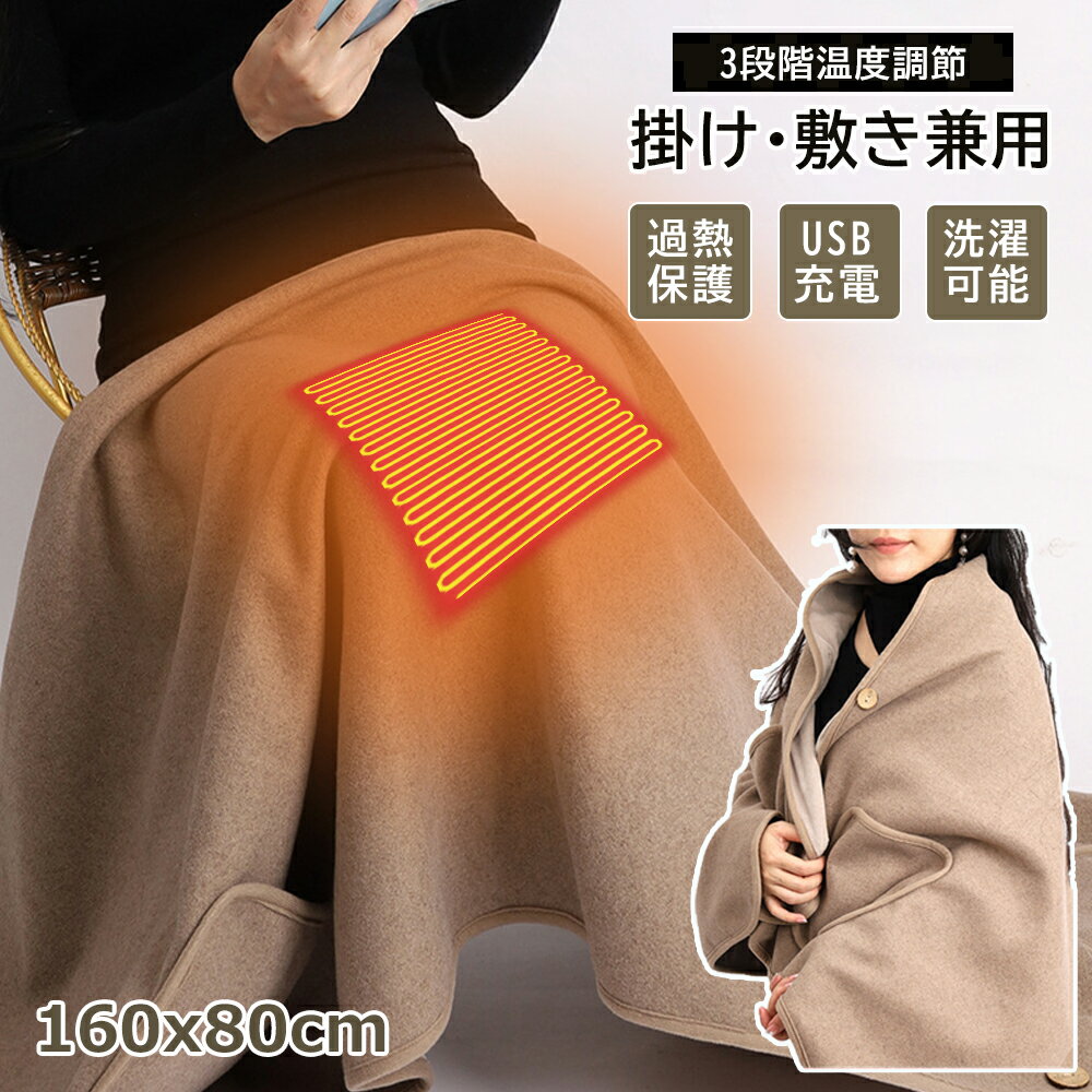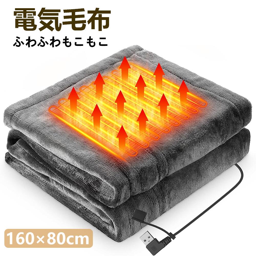 【1年間保証】 電気毛布 発熱毛布 敷パッド ひざかけ 寝具 大判サイズ タイマー 温度調節 掛け 敷き コードレス usb充電 3段階温度調節 usb給電 新生活 省エネ