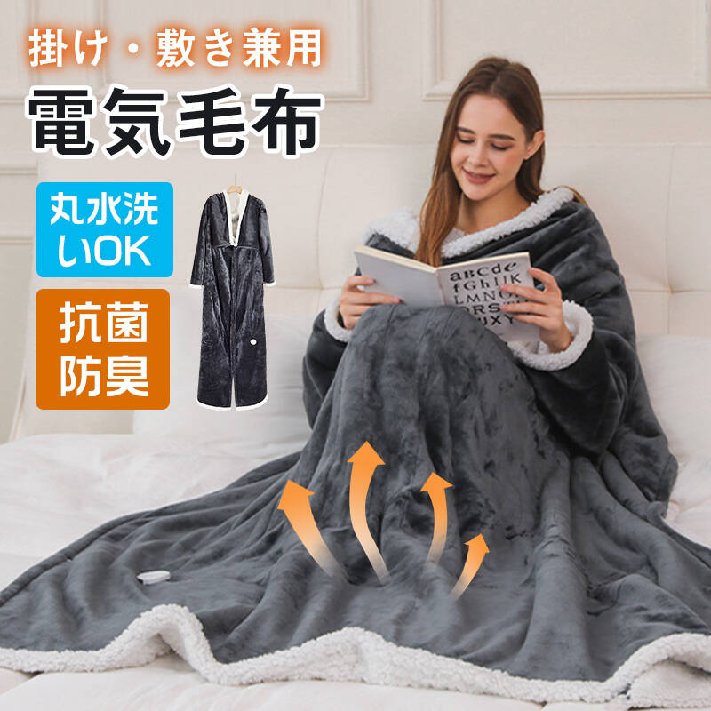 ★2025新品★電気毛布 パーソナル暖房 127 × 177cm 袖付き 毛布 掛け敷き 洗える 6・・・