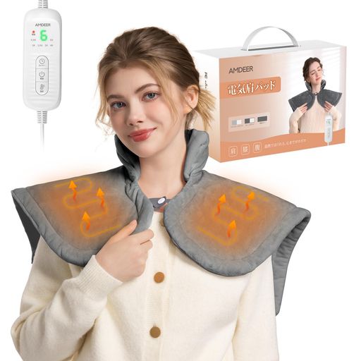 Amdeer電気肩パッド電気肩当て8段階温度切替6段階切タイマー両面ウェアラブルふわふわ高級フランネ・・・