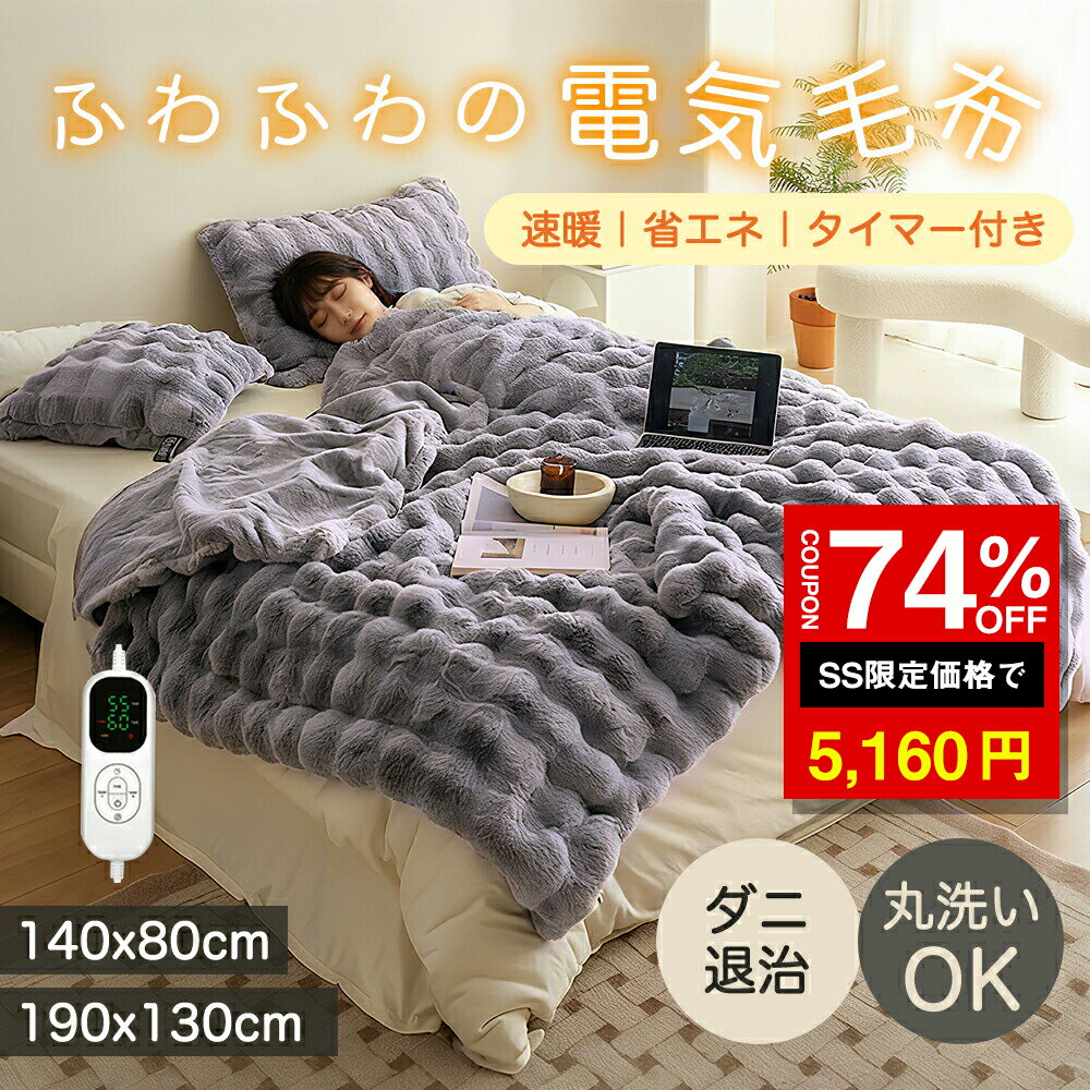 【SS限定クーポン利用で6180円】電気毛布 掛け敷き兼用 大判 190x130cm ラビットファー・・・