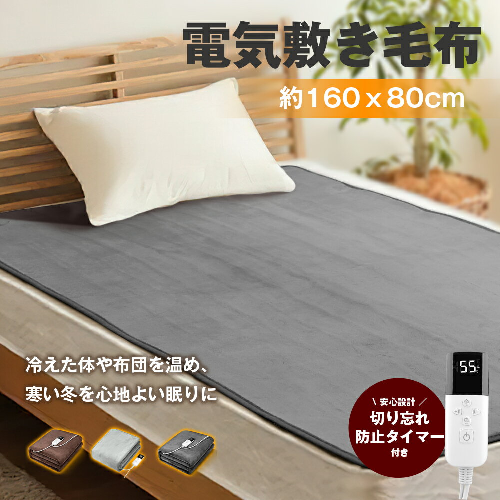 電気毛布 敷き 160×80cm 洗える 無段階温度調節 1〜12時間タイマー付 フランネル素材 厚・・・