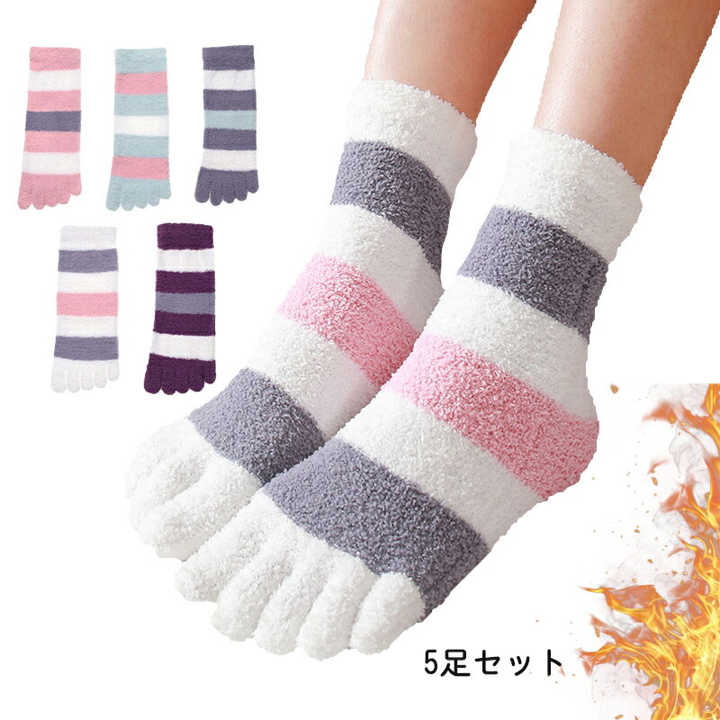 ソックス 5足セット レディース もこもこ5本指 あったか 厚手 冷え性 ルームソックス 暖かい 履・・・