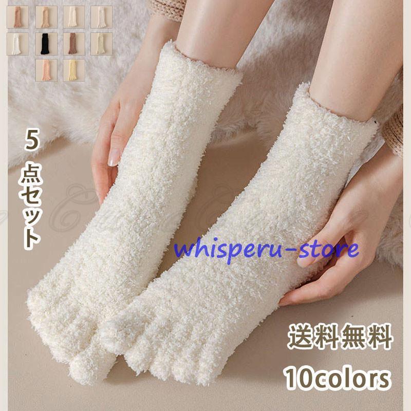 5足組 もこもこ五本指ソックス フットカバー 蒸れにくい 重ね履き 睡眠 フットウォーマー レッグウ・・・