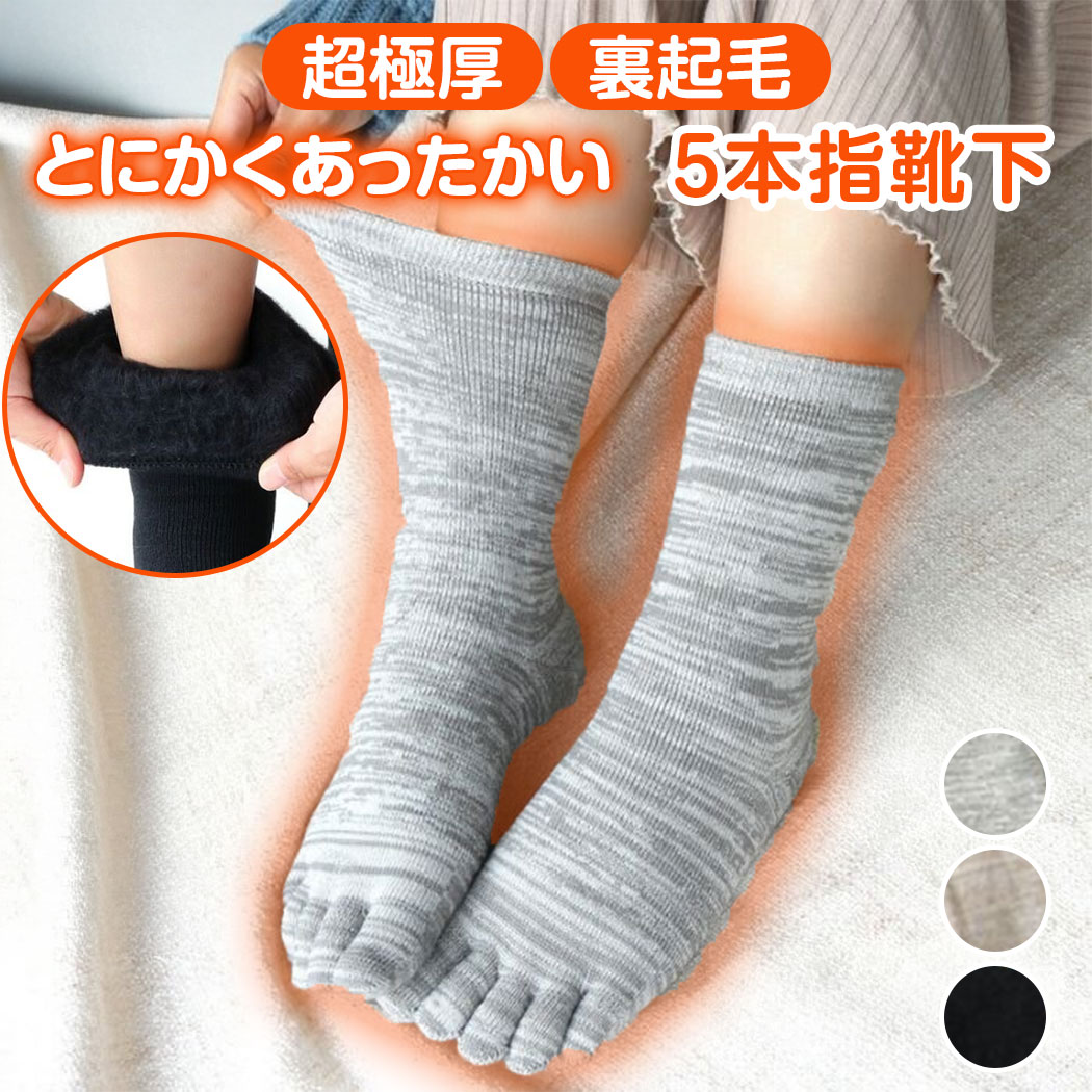 \ブラックフライデークーポンあり/ソックス 5足セット レディース もこもこ5本指 あったか 厚手 ・・・