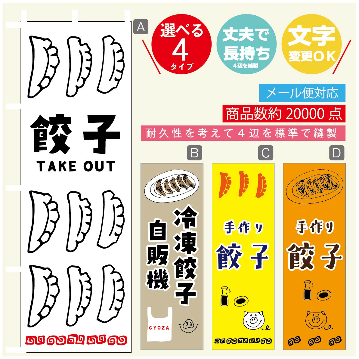 餃子 のぼり旗 ギョーザ 4タイプ 文字変更無料 文字のオリジナルOK