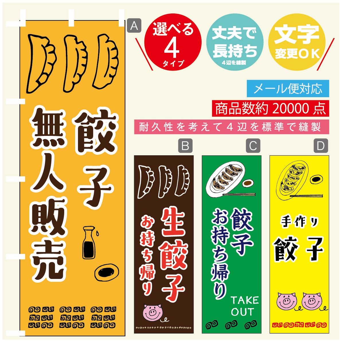 餃子 のぼり旗 ギョーザ 4タイプ 文字変更無料 文字のオリジナルOK
