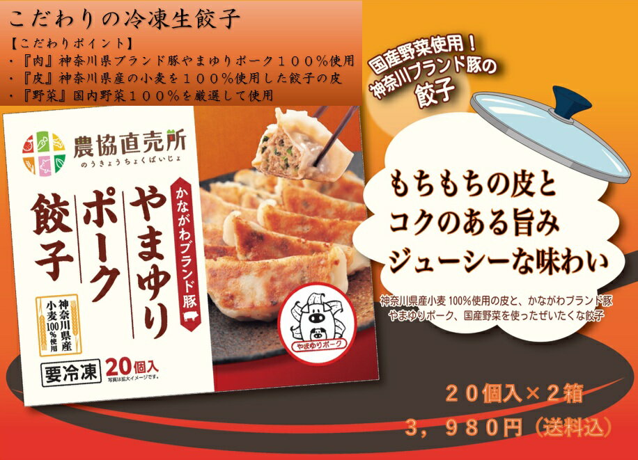 素材にこだわった贅沢な一品 厳選野菜と神奈川県産のやまゆりポークをたっぷりと練り込んだ具を神奈川県産の小麦で造った皮で包んだ モチモチ食感の贅沢餃子に仕上げました。