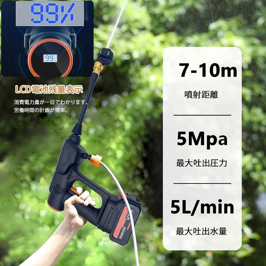 高圧洗浄機 コードレス 充電式 LCD電池残量表示付き 互換対応 5Mpa最大吐出圧力 自吸式 高圧洗浄器 軽量1.2KG 6-in-1多機能ノズル