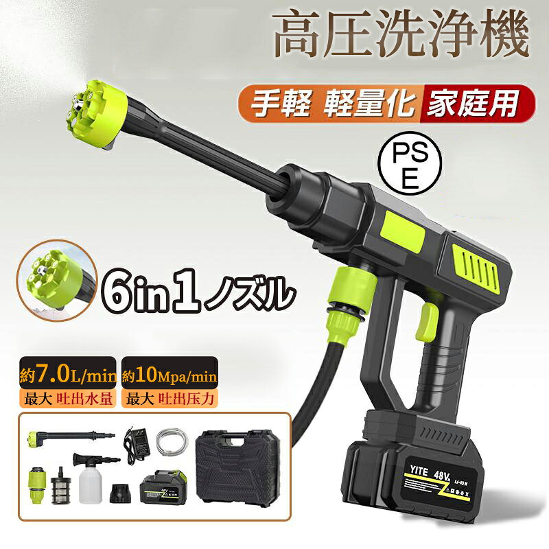 高圧洗浄機 コードレス 充電式 3段階水圧モード 最大10MPA吐出圧力 7L/min 自吸式 230W ポータブル 静音 パワフル 掃除用品 外壁掃除 洗車 車掃除 洗浄 そうじ 掃除【PSE認証】