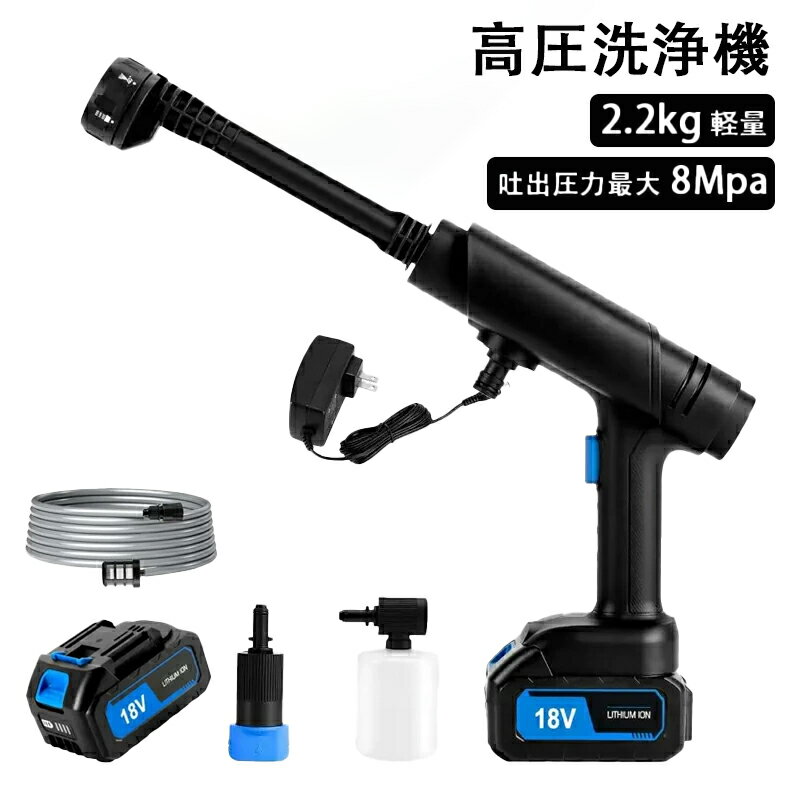 高圧洗浄機 洗車機 コードレス 充電式 家庭用 ベランダ 吐出圧力8MPa 強力噴射 高圧クリーナー・・・