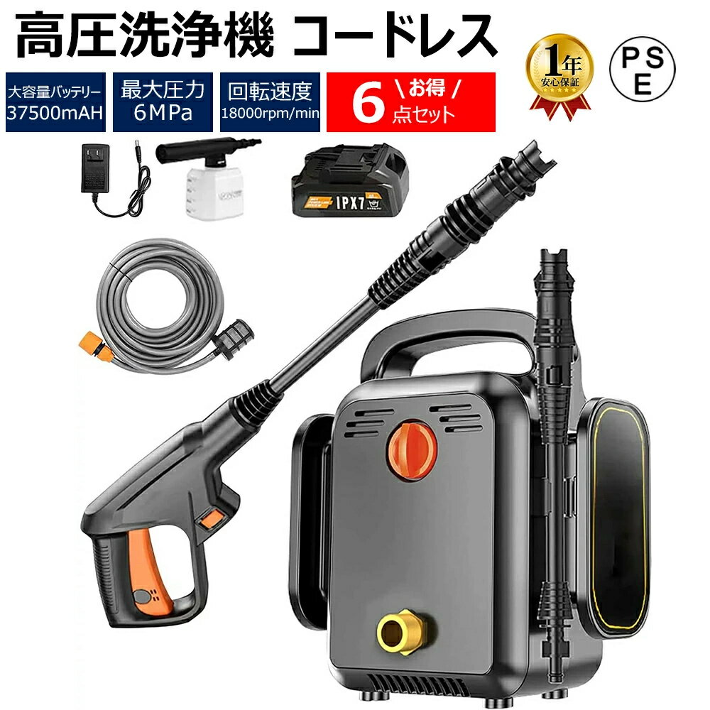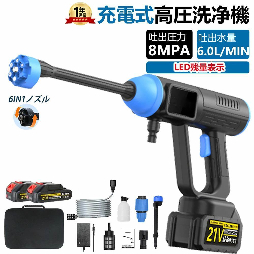 高圧洗浄機 コードレス 充電式 8MPa 6IN1 電力量表示 多機能ノズル付き洗車機【強化版 水圧・・・