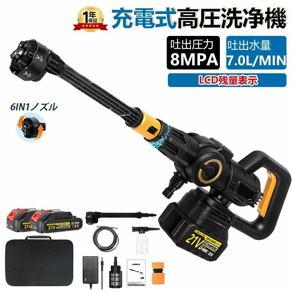 高圧洗浄機 コードレス 充電式 8MPa 6IN1 電力量表示 水圧洗浄機 家庭用 自吸式 多機能ノ・・・