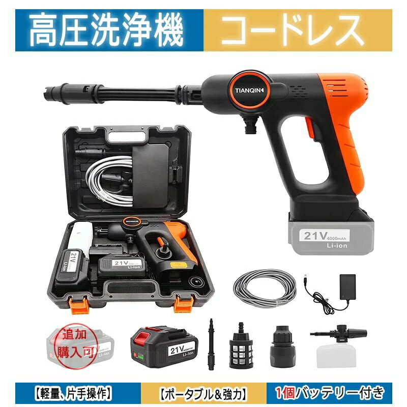 コードレス高圧洗浄機 高圧洗浄機 コードレス 充電式 バッテリー付き ベランダ コンパクト 軽量 外壁掃除 家庭用 強力 業務用 小型 電動工具 洗車 専用ケース付