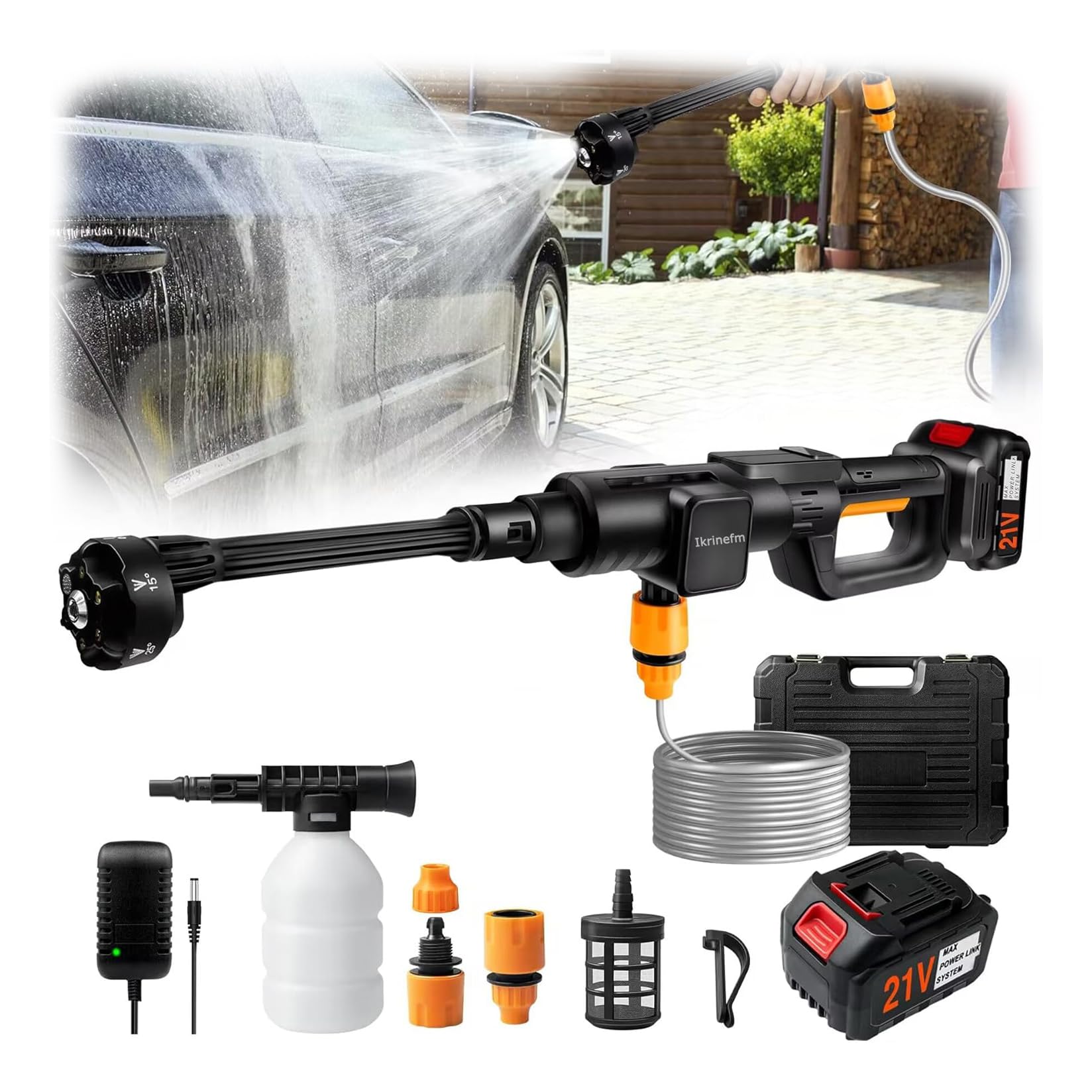高圧洗浄機 コードレス 充電式 高圧洗車機 15000mAh大容量バッテリー 自吸式 900PSI 6in1ノズル フォームガン付きコンパクト 多機能 洗車機 高圧洗浄器 ポータブル高圧洗浄機