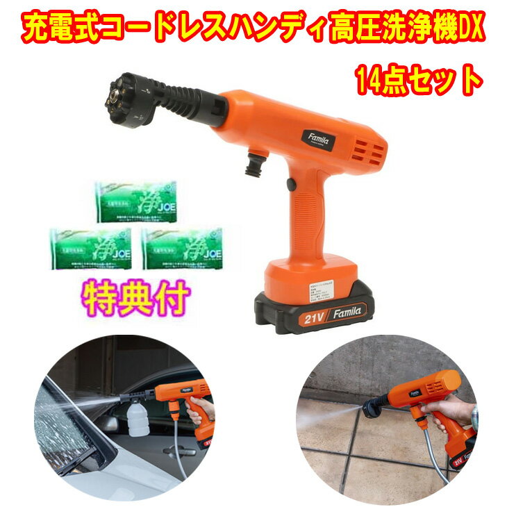 ファミラ 充電式コードレスハンディ高圧洗浄機DX 14点セット 洗剤JOE30g×3個特典付き ハン・・・
