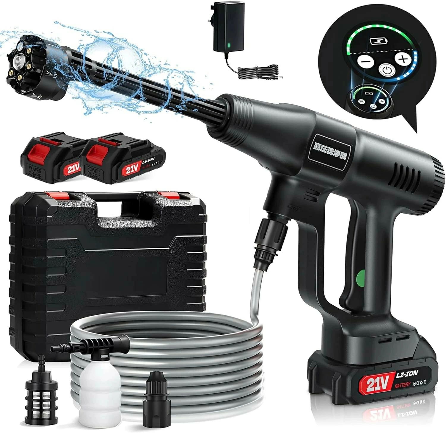 高圧洗浄機 コードレス 充電式 エアコン 強力噴射 バッテリー2個付き自吸式 多機能 LED残量表 軽量高圧洗浄器 自動アクセサリーガーデンホースノズル水スプレー 家庭用