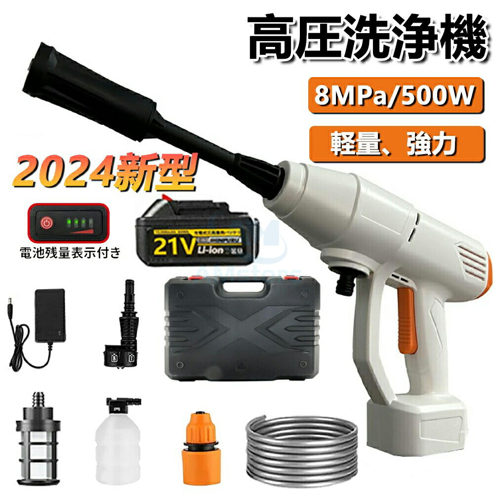 高圧洗浄機 コードレス 充電式 8MPa吐出圧力 21V バッテリー付属 家庭用 軽量 3段階水圧調・・・