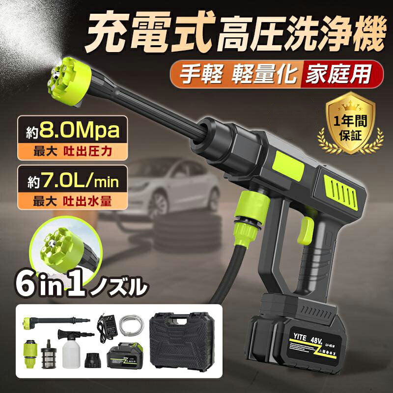 高圧洗浄機 コードレス 充電式 6in1 8MPa 高水圧 高性能