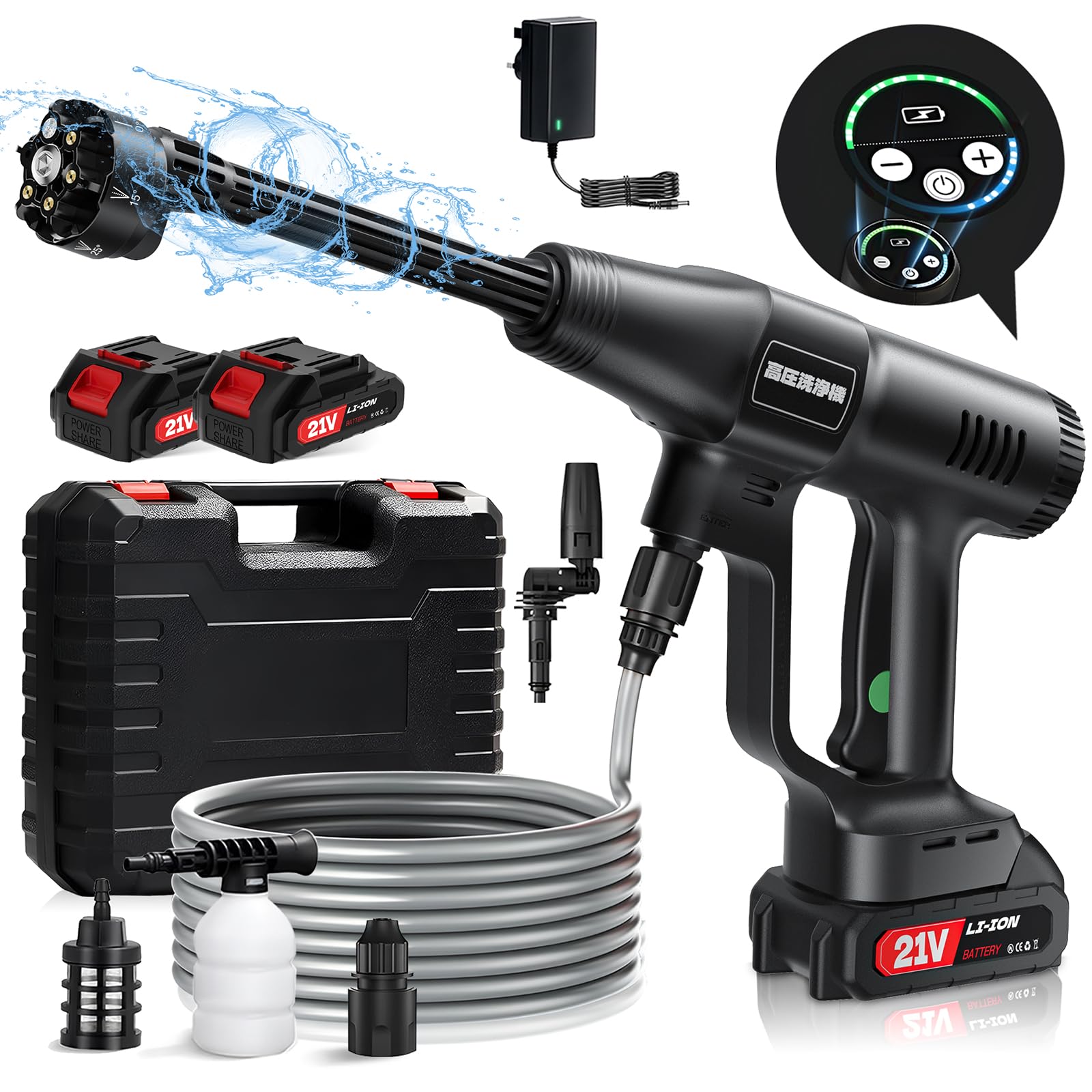 コードレス高圧洗浄機 パワークリーナー 21VF充電式バッテリー付き 600PSI 1.37GPM ・・・