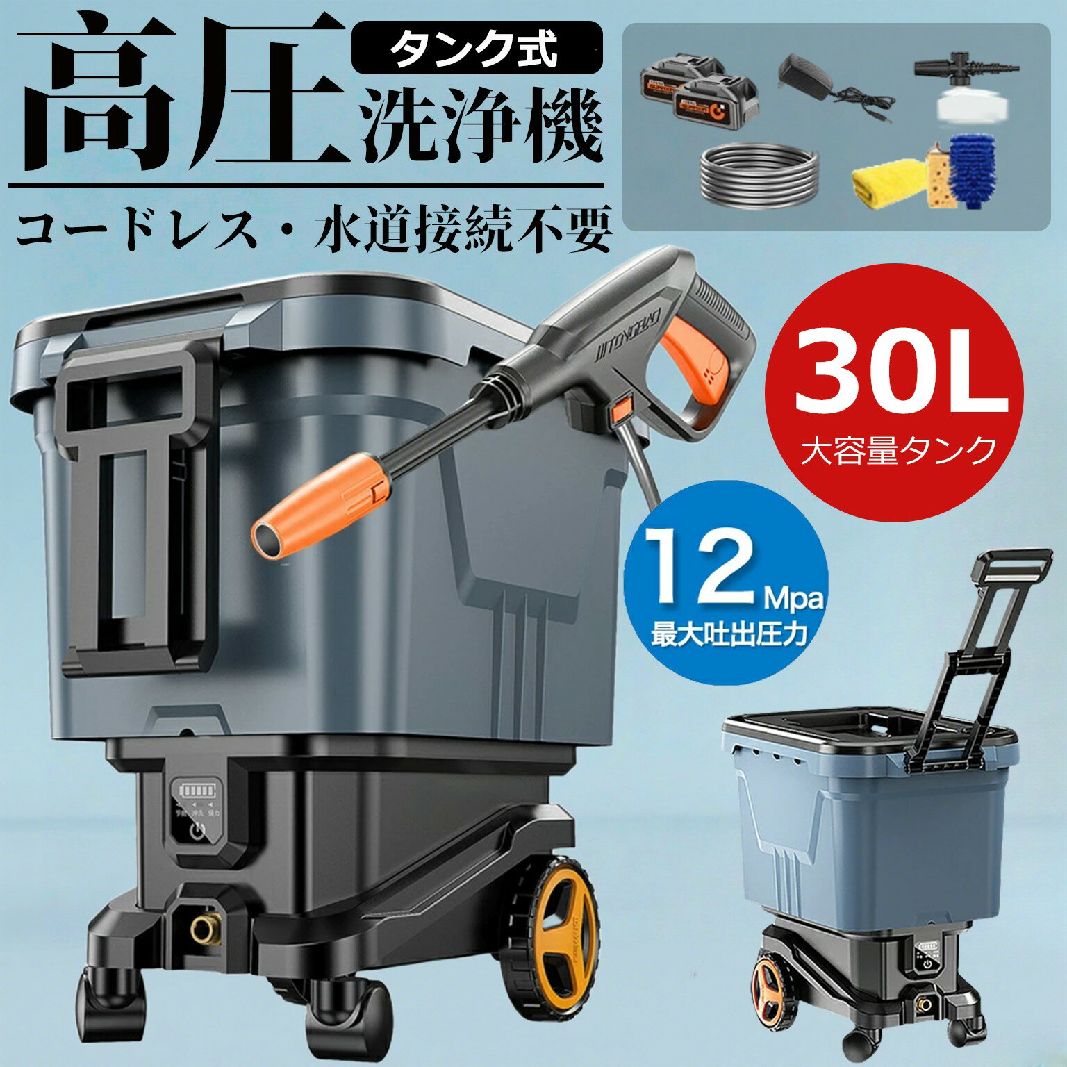 「業界改良版」高圧洗浄機 タンク式 コードレス 8点セット 充電式 電動 業務用 家庭用 30L 水・・・