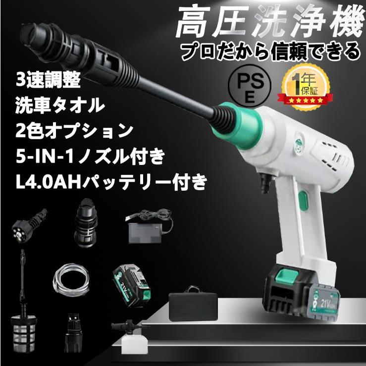 高圧洗浄機 充電式 ポータブルウォッシャー 大掃除 掃除用品 外壁掃除 洗車 車掃除 水圧 ガン タイプ 強力 ホース ノズル 小型 軽量 サイレント 庭 塩害 台風