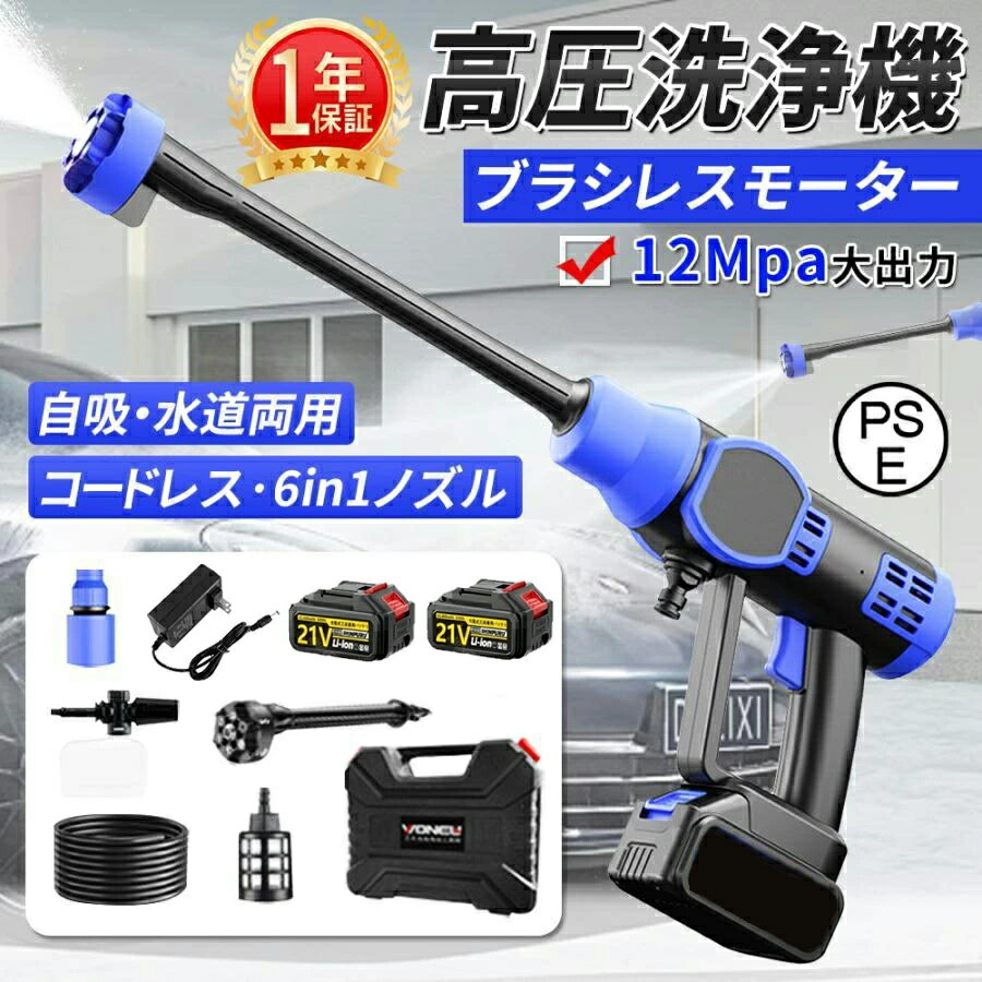 【12MPa】 高圧洗浄機 コードレス 小型 充電式高圧洗浄機 コンパクト洗浄機 6in1多機能ノズ・・・