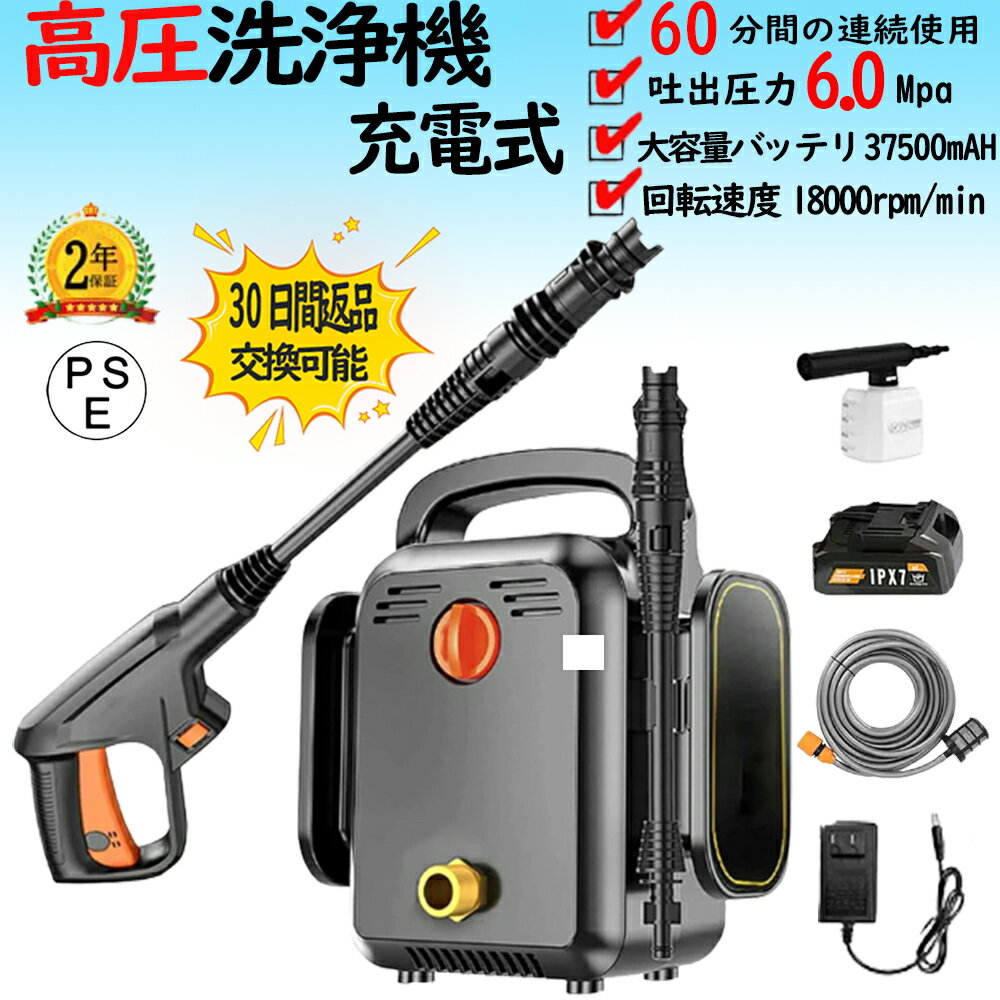 高圧洗浄機 コードレス 充電式高圧洗浄機 電動工具 コードレス洗浄機 高圧洗浄 最大水圧 6.0MPa 多機能ノズル自吸式電源コードは 洗車 強力噴射 洗浄 電動工具 大掃除 自吸タイプ 家庭用