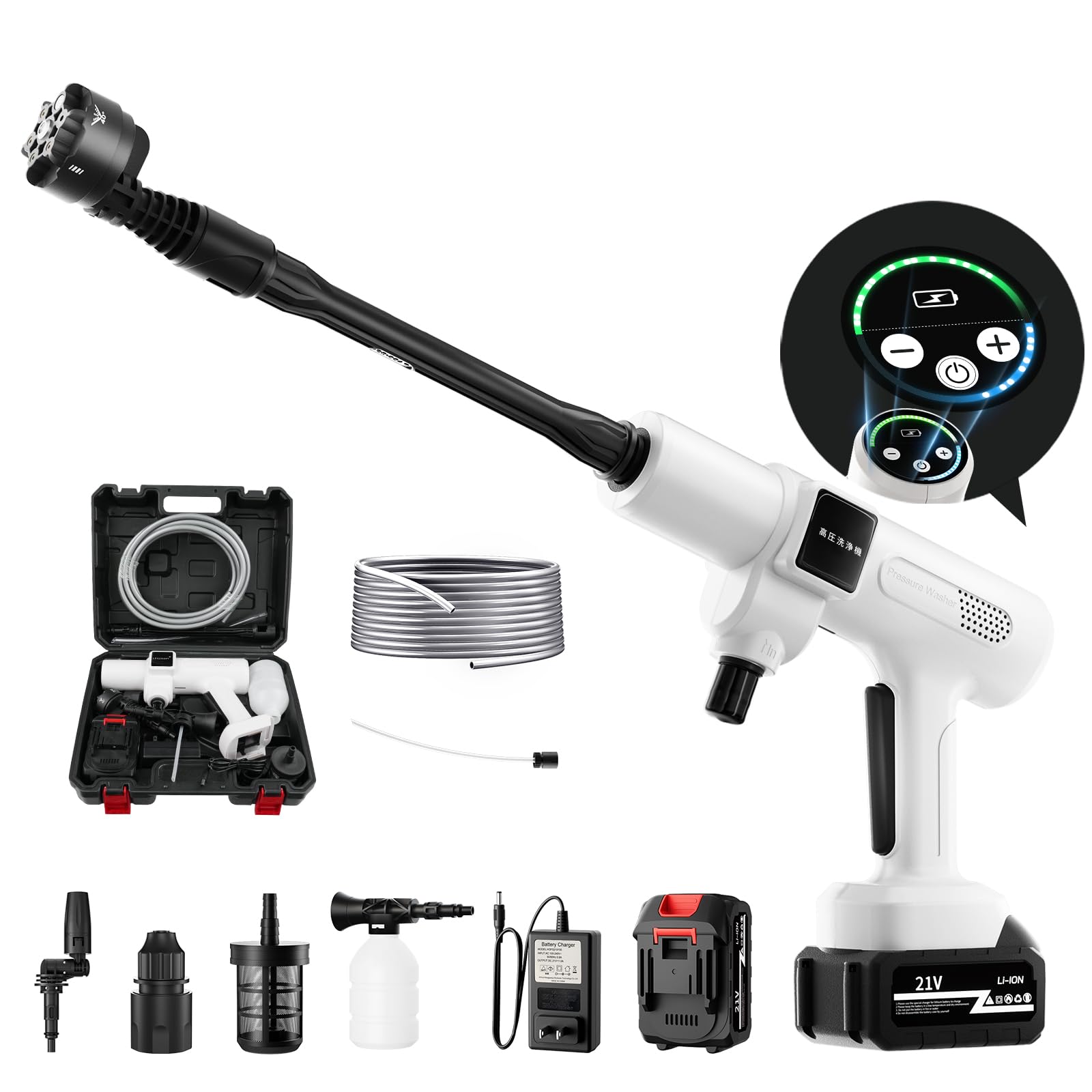 軽量大容量充電式バッテリー 6-in-1ノズル 3段階調節圧力 コードレス 水圧洗浄機50bar 洗・・・