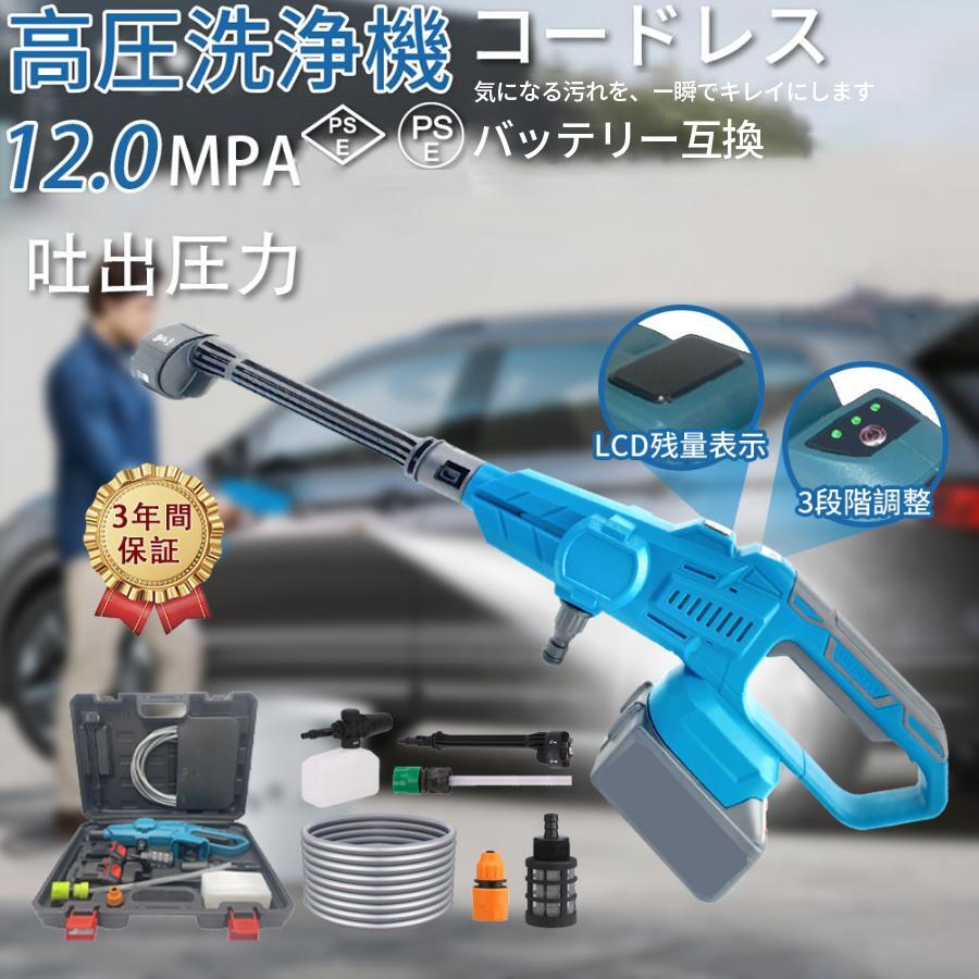 ★翌日発送★ 高圧洗浄機 コードレス 充電式 6段階マルチスプレー 12MPa吐出圧力 【3段階水圧・・・