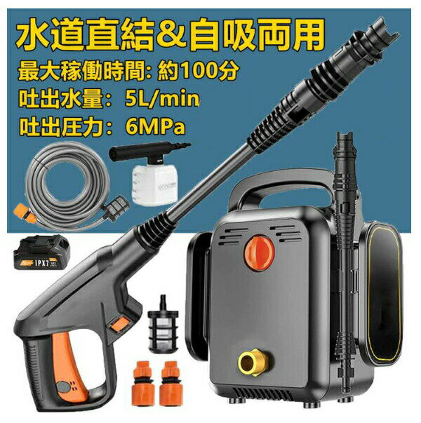 高圧洗浄機 コードレス 充電式高圧洗浄機 電動工具 コードレス洗浄機 高圧洗浄 最大水圧 6.0MPa 多機能ノズル自吸式電源コードは 洗車 強力噴射 洗浄 電動工具 大掃除 自吸タイプ 家庭用