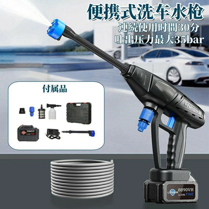 2023最新型 コードレス 高圧洗浄機 コードレス 洗車タオル 業務用 家庭用 バッテリー搭載