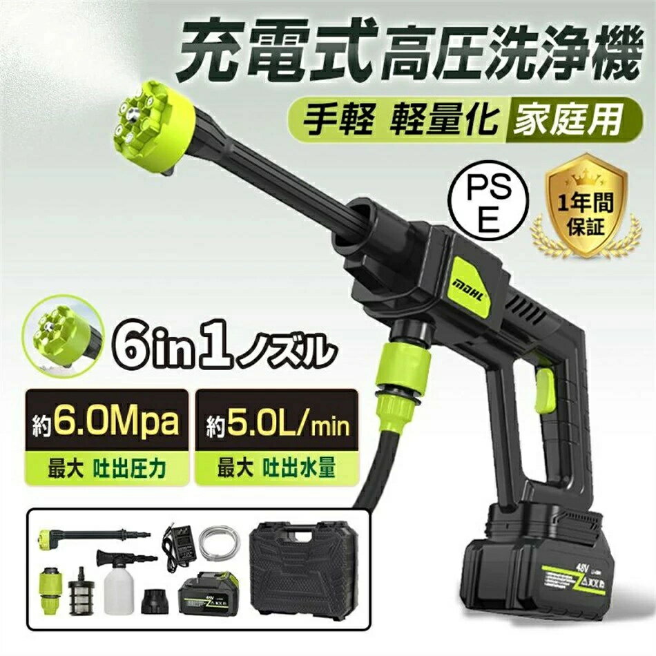 高圧洗浄機 コードレス 充電式 軽量 5MPA最大吐出圧力 21V PSE認証10.0Ah バッテリ・・・
