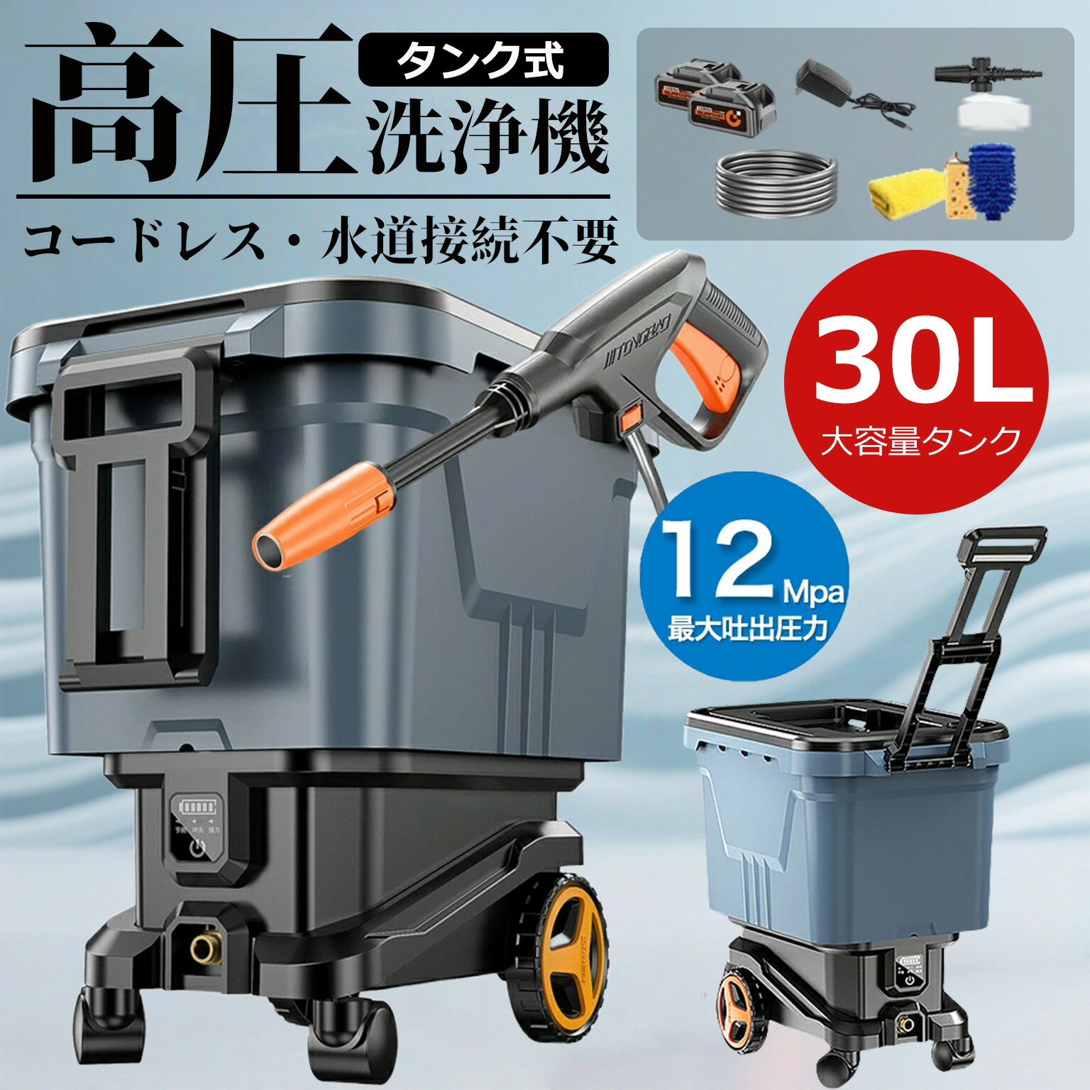 「業界改良版」高圧洗浄機 タンク式 コードレス 8点セット 充電式 電動 業務用 家庭用 30L 水・・・
