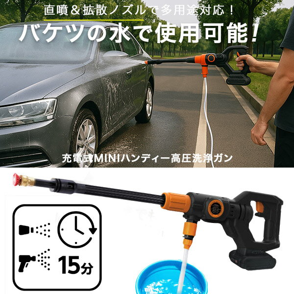 充電式高圧洗浄ガン ハンディ高圧洗浄機 小型高圧洗浄機おすすめ ベランダ掃除高圧洗浄機 バケツ給水可能洗浄機 洗車用高圧洗浄ガン 軽量コードレス洗浄機
