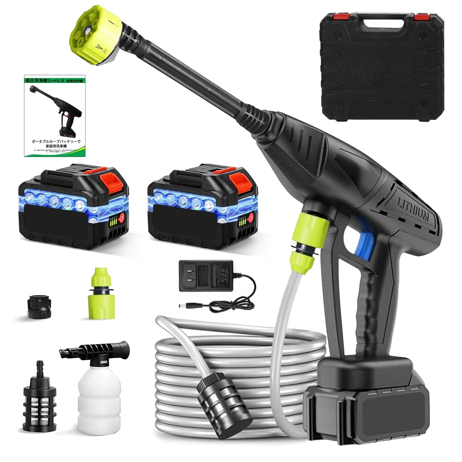 【バッテリー2個】コードレス高圧洗浄機 高圧洗浄機 コードレス 家庭用高圧洗浄機 ポータブル高圧洗浄・・・