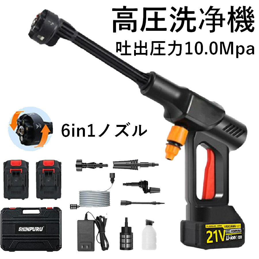 高圧洗浄機 コードレス 充電式 21V 水圧洗浄機 水圧調整可能 高圧洗車 高圧洗浄ガン 吐出圧力5.0MPa 高圧洗浄 6IN1 高圧クリーナー ノズル 自吸式 強力噴射 洗車機 高圧噴射 収納ボックス