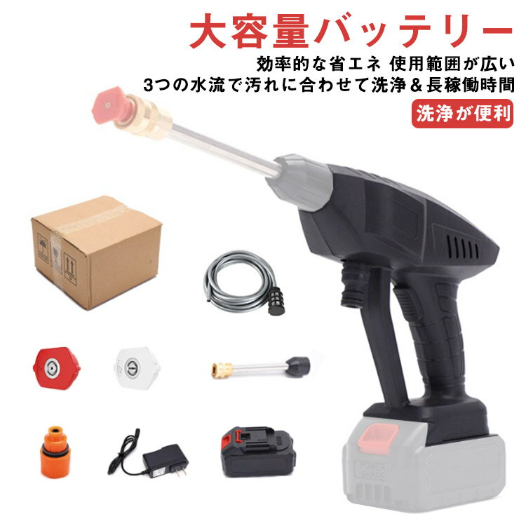 高圧洗浄機 水圧洗浄機 洗車 ガン コードレス 充電式 ポータブル 強力噴射 電動工具 軽量 コンセ・・・