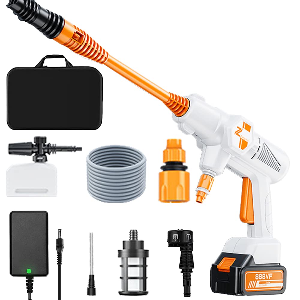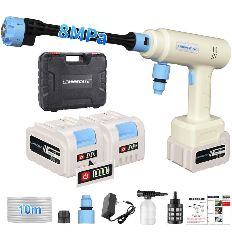 高圧洗浄機 充電式 ポータブルウォッシャー 大掃除 掃除用品 外壁掃除 洗車 車掃除 水圧 ガン タイプ 強力 ホース ノズル 小型 軽量 サイレント 庭 塩害 台風